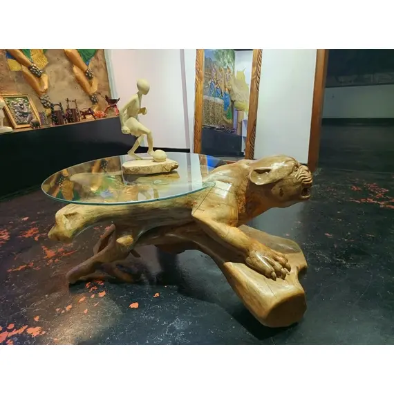 Jaguar Sculpture Coffee Table. This striking centerpiece features a lifelike jaguar in full motion, sculpted with dynamic detail and finished in a sleek, contemporary polish. The tempered glass tabletop (available in 82cm or 116cm lengths) rests above the powerful feline, merging high-end artistry with everyday function. At 51cm high, it’s perfectly sized to anchor any modern living room, lounge, or office in bold sophistication.
