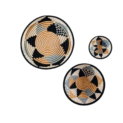 Handwoven Artisan Craftsmanship – Made from natural materials with intricate weaving techniques, ensuring high-quality and durability.Versatile Home Décor – Can be used as wall art, table centerpieces, or accent décor for a modern boho aesthetic.Set of Three Sizes – Includes 30cm, 25cm, and 18cm woven baskets for a layered, stylish display.Rustic & Natural Elegance – Adds warmth and texture to any room, complementing bohemian, minimalist, and rustic home styles.Eco-Friendly & Sustainable – Crafted using locally sourced materials, supporting ethical craftsmanship and sustainable home décor.