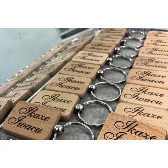Welcome guests with a warm, personalized touch using these beautifully crafted wooden keyrings. Each keyring is made from durable, light-toned wood and features the phrase "Ikaze Iwacu" ("Welcome to our home") elegantly engraved in a flowing script. They are finished with a sturdy metal ring for keys. These keyrings serve as a memorable keepsake, perfect for wedding favors, housewarming gifts, or as a thoughtful way to thank guests for attending any special occasion.