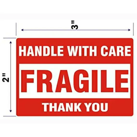 • Clear text: HANDLE WITH CARE - FRAGILE - THANK YOU